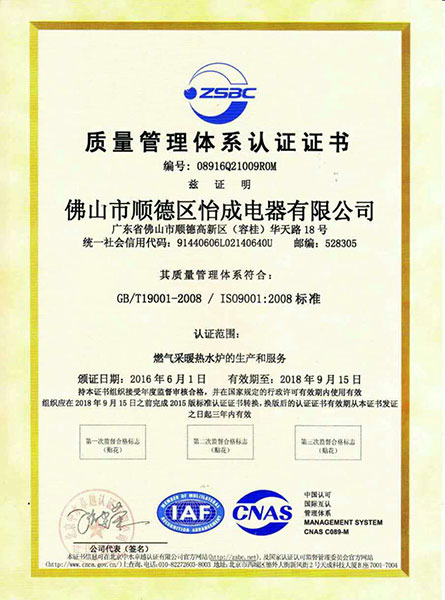 佛山市順德區(qū)怡成電器有限公司屬下有八部一室,三大車間,工程技術(shù)人員和管理人才100多人,一大批現(xiàn)代化五金生產(chǎn)設(shè)備,自動噴涂生產(chǎn)線和功能齊全的現(xiàn)代化生產(chǎn)線,公司為做好壁掛爐產(chǎn)品,從一開始就選用高、精、尖的生產(chǎn)設(shè)備和檢測設(shè)備和自動翻版檢測設(shè)備。連續(xù)配氣系統(tǒng)設(shè)備,NOX綜合測試裝置,五合一全電腦綜合測試設(shè)備儀器,測試的準(zhǔn)確性、可靠性及耐久試驗(yàn)都在同行具有水平。